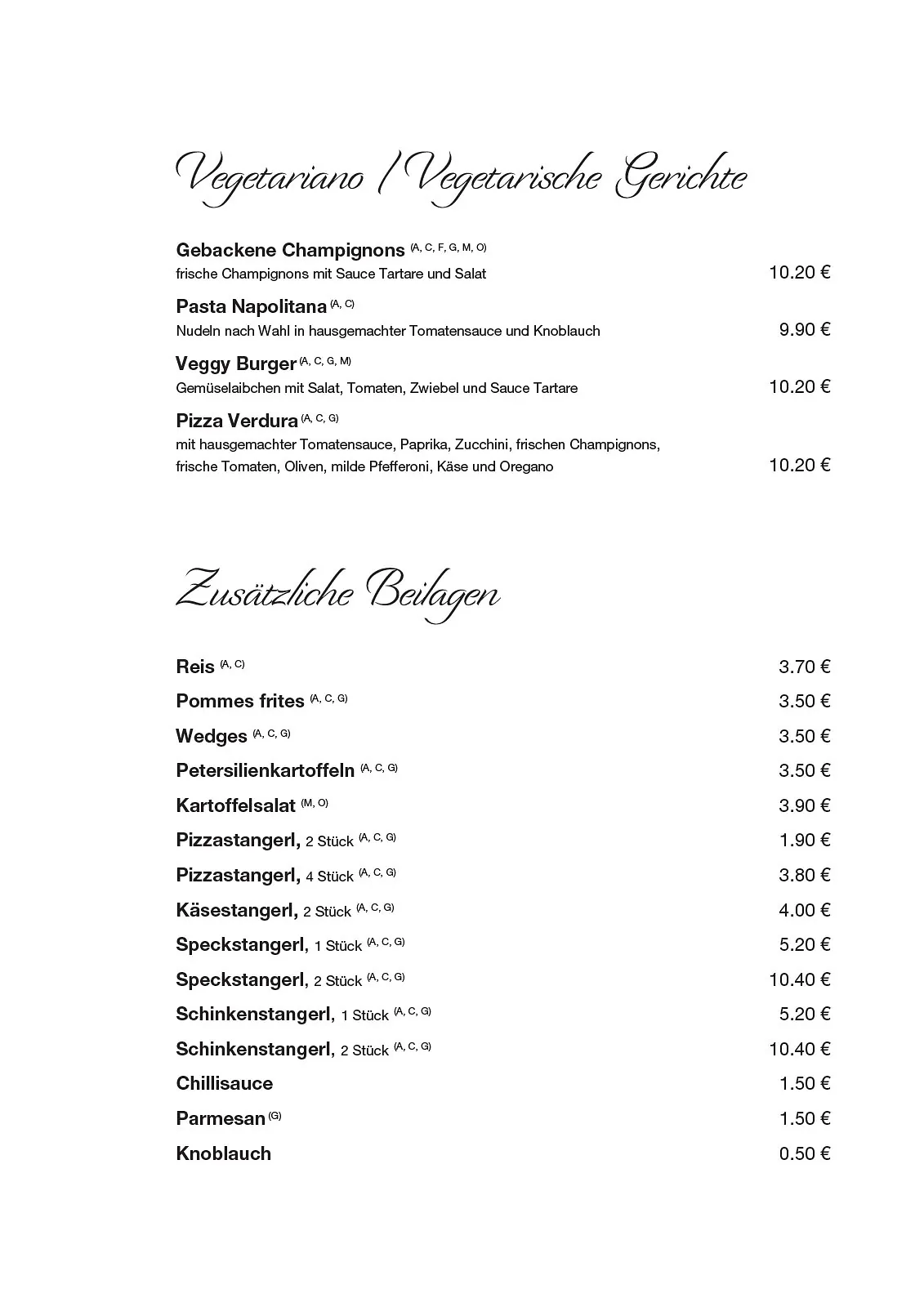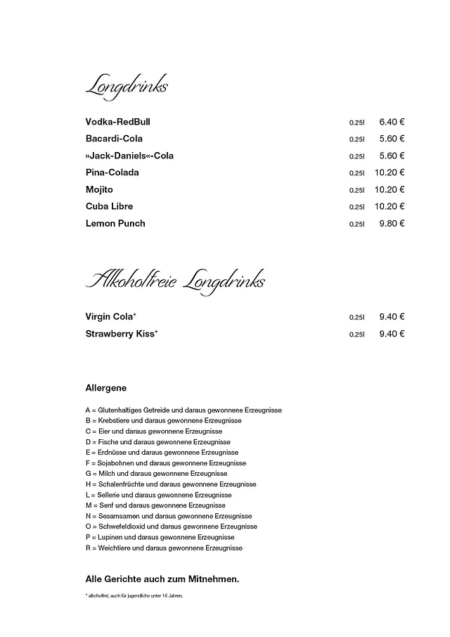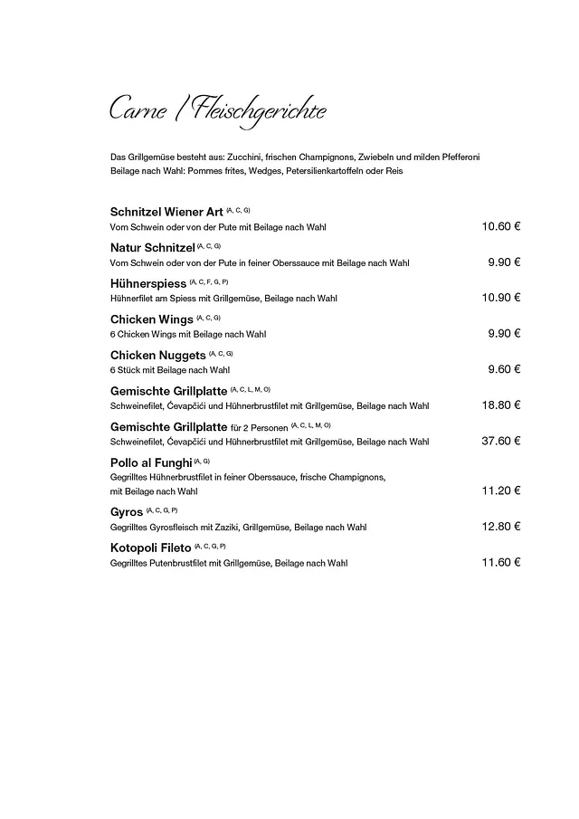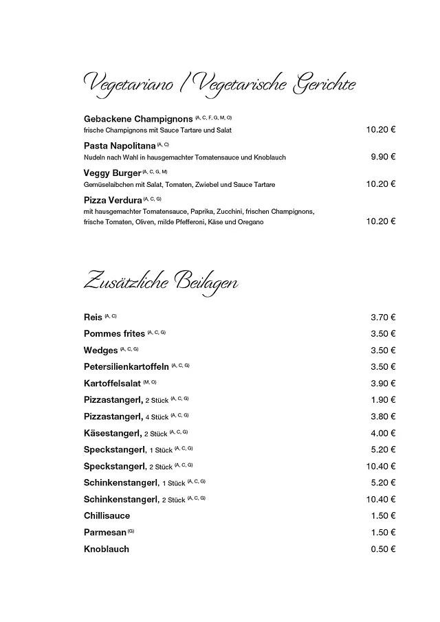 Bei uns genießen Sie frisch gekochte Spezialitäten aus der italienischen und österreichischen Küche. Wir bereiten alle Speisen aus hochwertigen Zutaten für Sie zu und unser freundliches Servicepersonal nimmt auch Ihre Sonderwünsche gerne entgegen. Bis bald in unserem Restaurant – wir freuen uns auf Ihren Besuch!