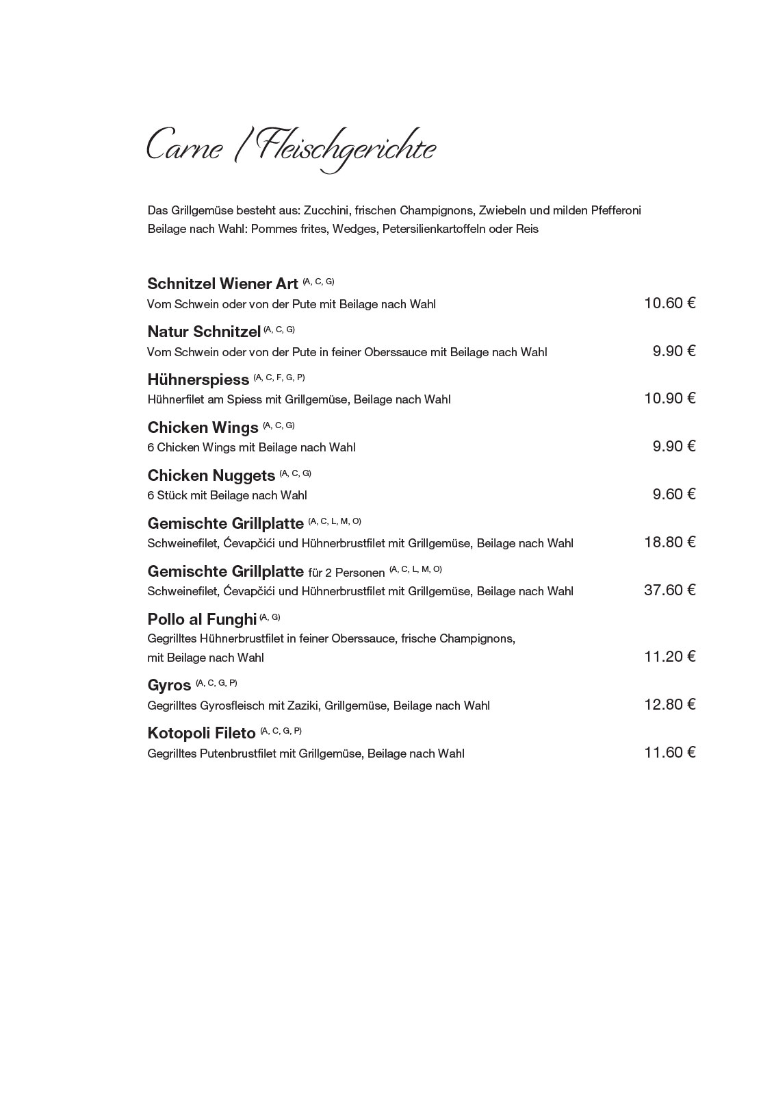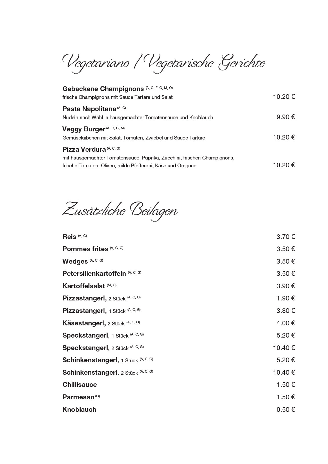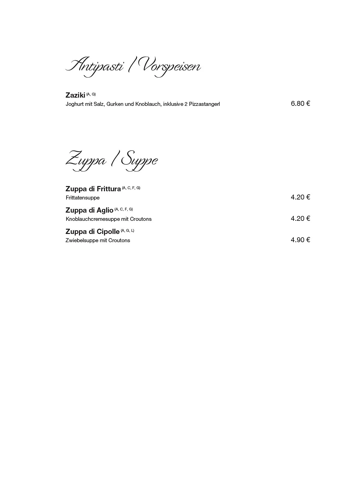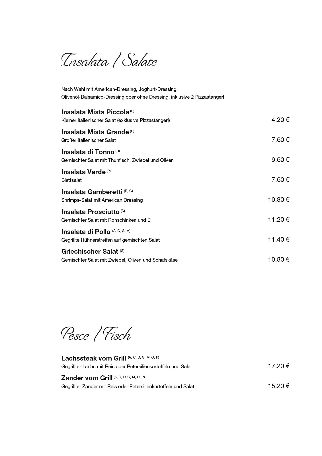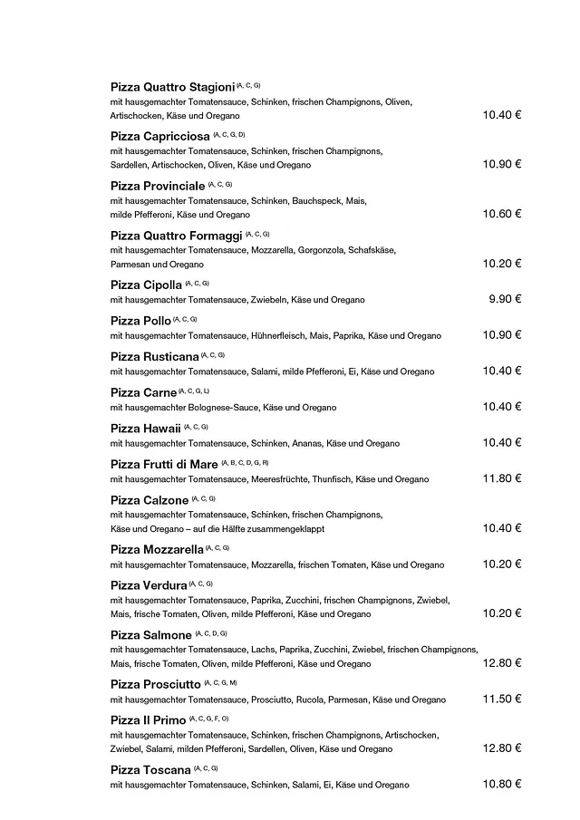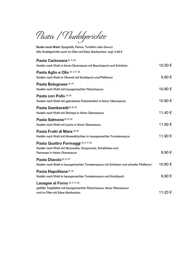 Il Primo in Perg – unsere Speisekarte