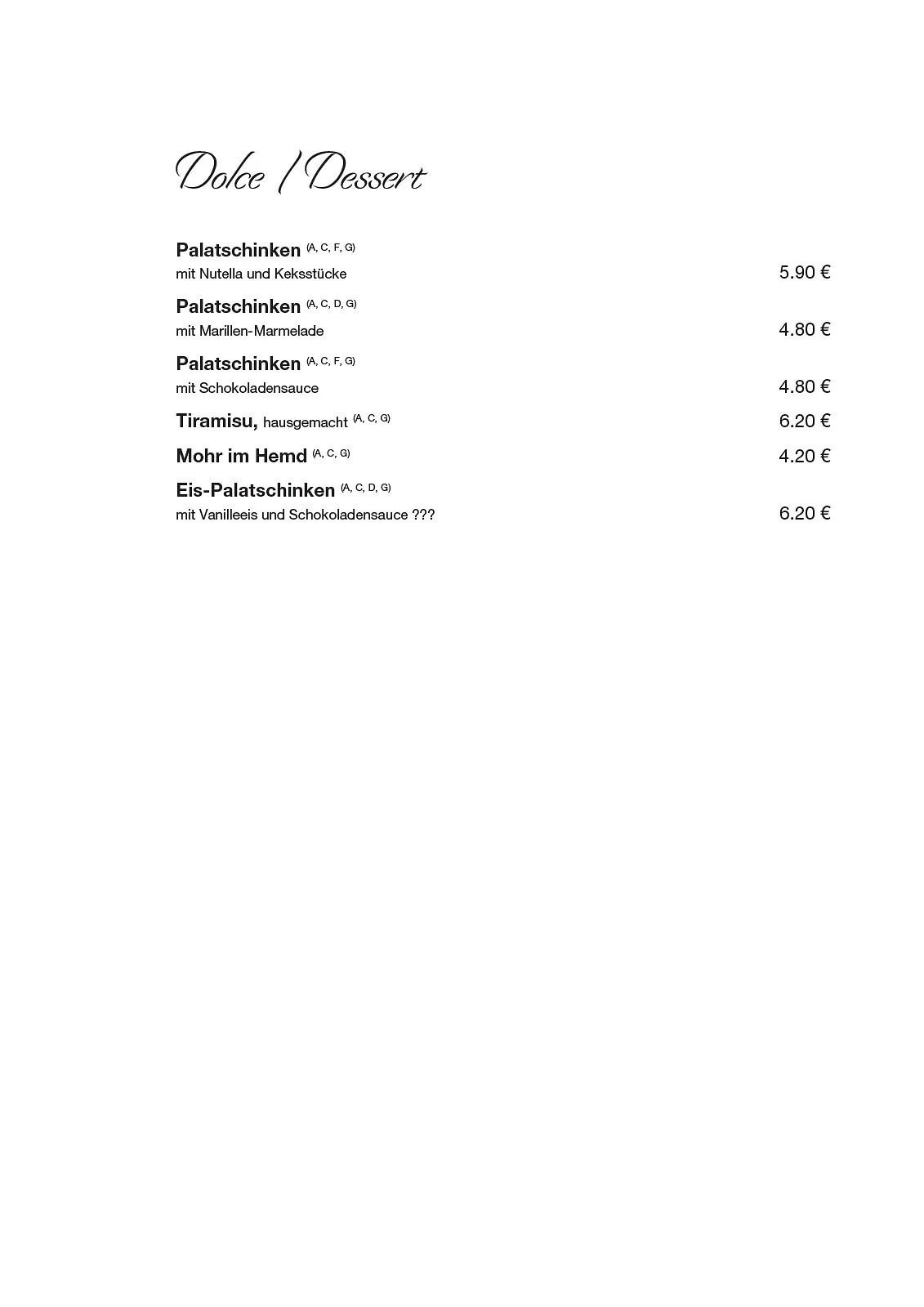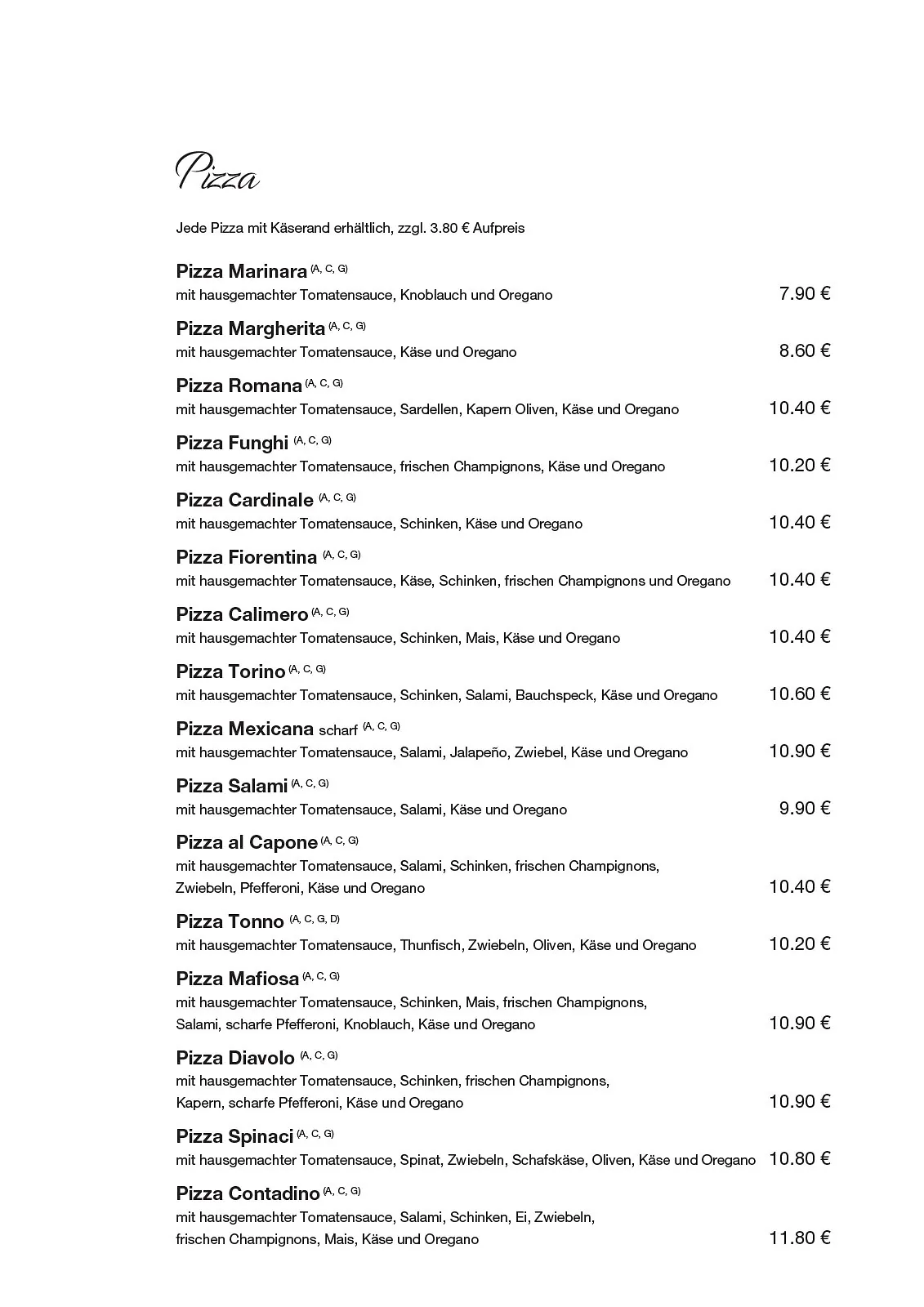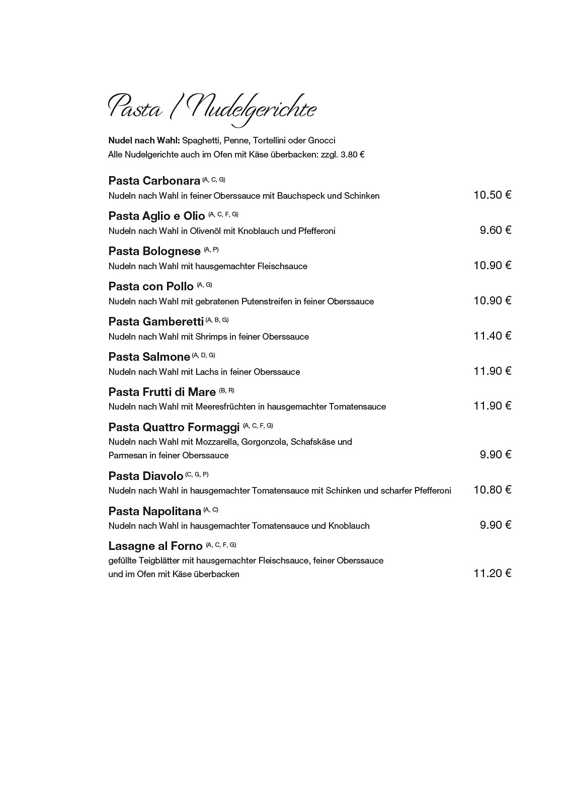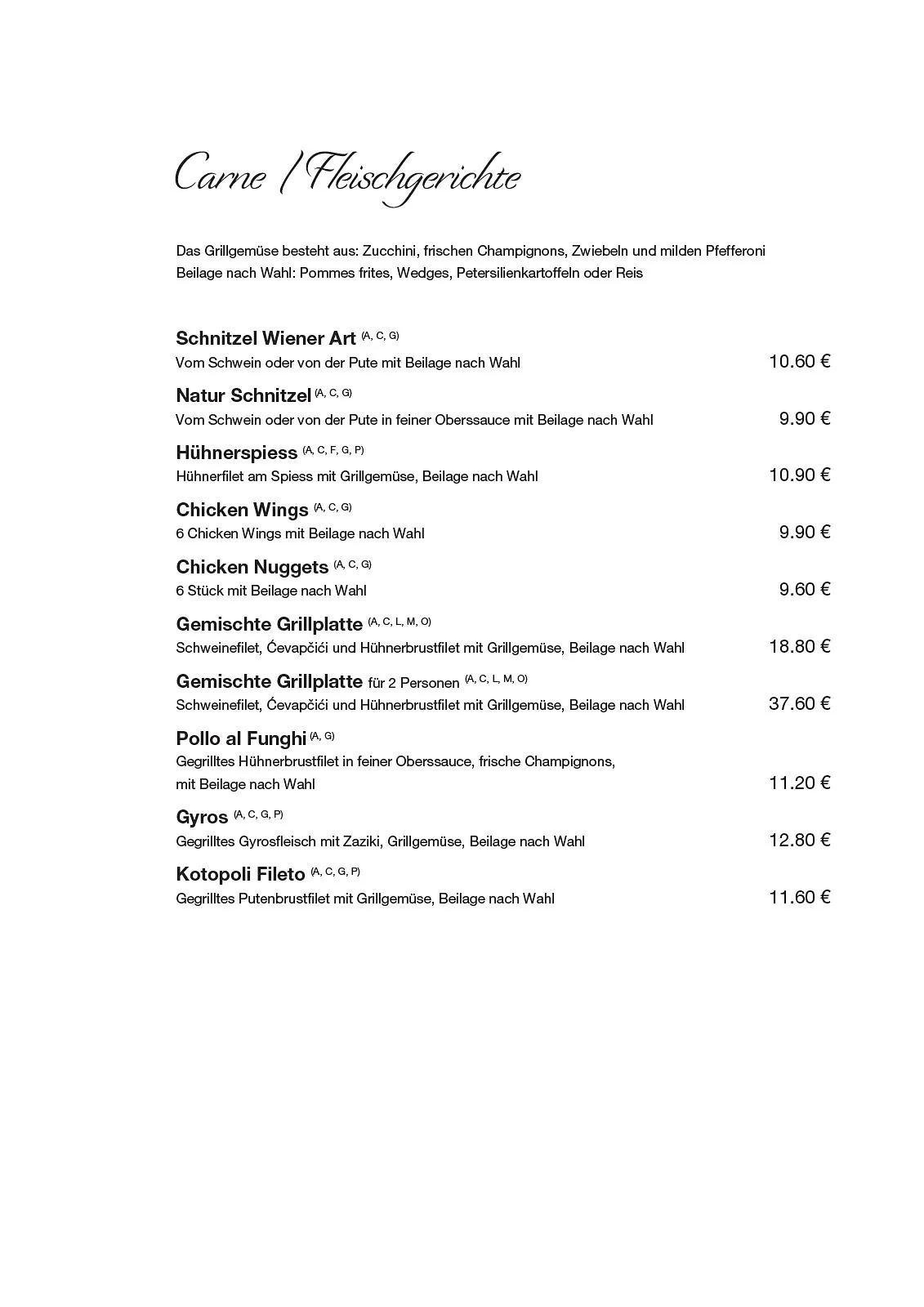 Il Primo in Perg – unsere Speisekarte